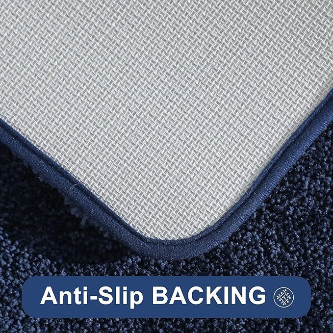 COSY HOMEER Bath Rugs for Bathroom Extra Thick- Anti-Slip Bath Mats Soft Plush Yarn Shaggy 100% Strong Mirco Polyeste Mat Living Room Bedroom Mat Floor Water Absorbent(Navy,24x48 - Inches)