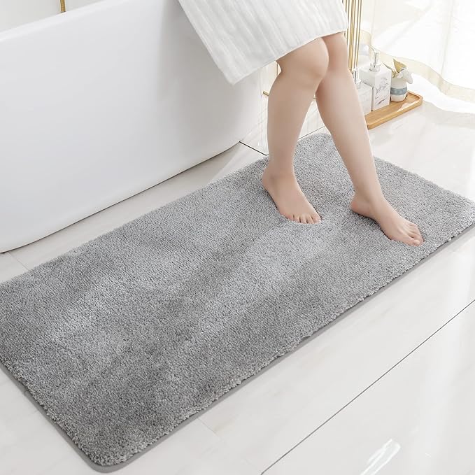 COSY HOMEER Bath Rugs for Bathroom Extra Thick - Anti-Slip Bath Mats Soft Plush Yarn Shaggy 100% Strong Mirco Polyeste Mat Living Room Bedroom Mat Floor Water Absorbent(Grey,24x48 - Inches)