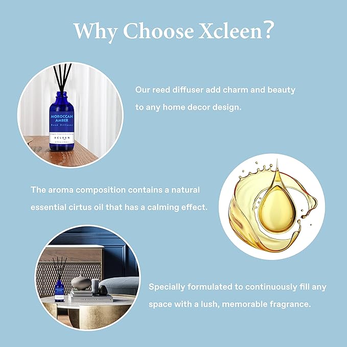 - SCENTED REED DIFFUSERS: A soothing & relaxing blend of eucalyptus, rose, lemon, cinnamon, clove leaf and ambery, the sweet scent of vanilla enhances the feeling of coziness on lazy days