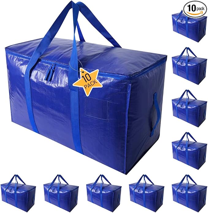 Moving Bags Heavy Duty Extra Large Cube Storage Tote for Space Saving, Traveling Organizer, with Zippers & Strong Carrying Handles (Set of 10)