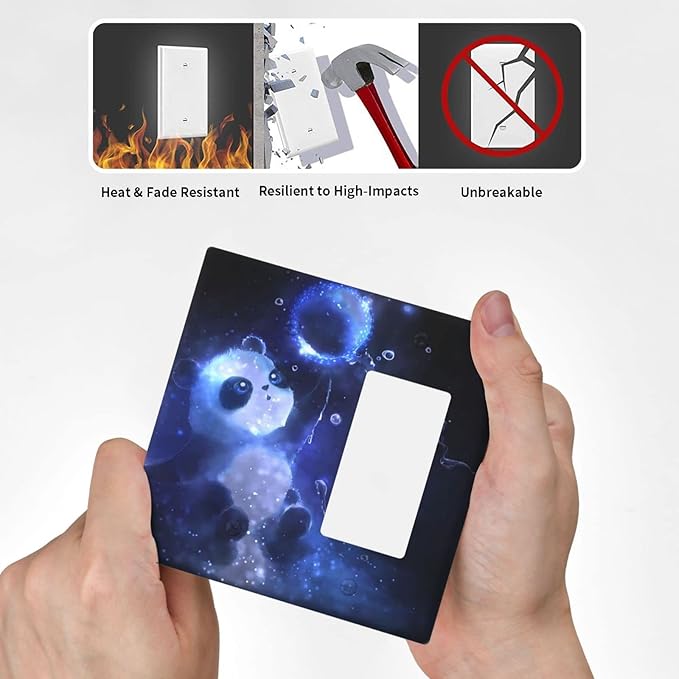 Cute Baby Panda Light Switch Cover Wall Plate Decorative 2 Gang Combination Blank/Rocker Outlet Covers Blue for Farmhouses Kitchens Bathrooms 4.5 x 4.6 in
