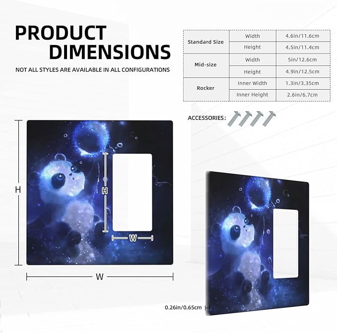 - Size:combo single blank rocker wall plate : 4.5" x 4.6".the standard Size is easy to install on the wall grid, covering more wall defects, which makes it easy to decorate any standard switch cover and electrical socket.