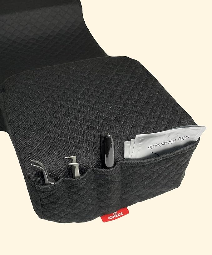 - [POCKETS ON BOTH SIDES] - Eyelash pillows for bed features two big pockets with four sections on both sides of the lash pillow for lash extensions so that lash artists can stay organized and have all the essential tools a few inches away from lash artists' arms.