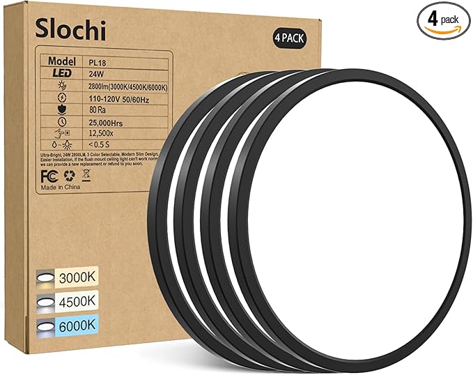 - 【Ultra-Bright Ceiling Light】: Higher lumens and lower energy consumption;Equipped with 100 premium leds,Slochi flush mount ceiling light offers higher lumens and lower power, which can illuminate space about 216ft².The brightness of this 24W 2800lm led ceiling light is equivalent to 150W traditional incandescent light