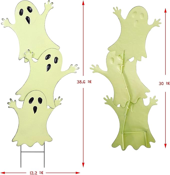 - ADORABLE HALLOWEEN YARD DECOR: Joliyoou metal yard stake is designed in the shape of three stacked ghost in a heap, the classic Halloween character and elements, which are waving their hands and trying to scare you, very lovely and interesting.