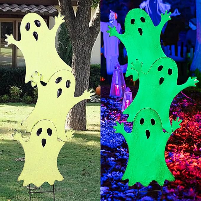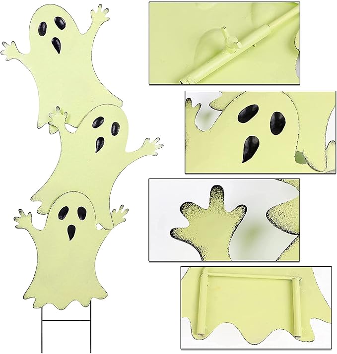 - PLACE IT WHERE YOU LIKE: Joliyoou metal Halloween stake is perfect for flowerpot, front porch, entryway, flowers bed, garden, yard and so on. The fluorescent ghost stake will definitely add great adorable and spooky Halloween festive touch.