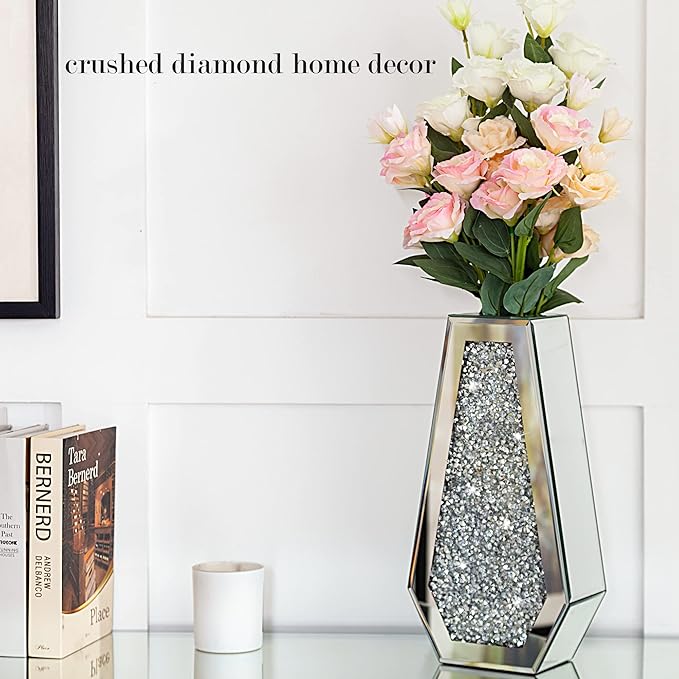 - Beautiful Upscale Silver Crush Diamond Mirrored Vases ‒ Modern, Tidy clean, elegant and stylish appearance with any kind of flower and other decorations for home decor, modern centerpiece, restaurant, flower shop, dresser table, office desk. Best Decorative Floral Container-suitable for fresh flower arrangements, silk or dried flowers, and vase fillers.