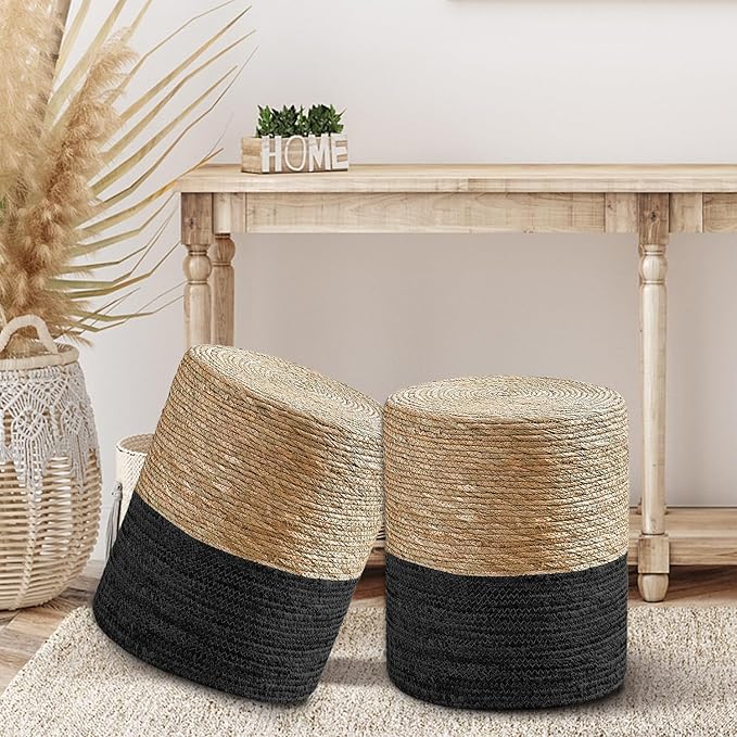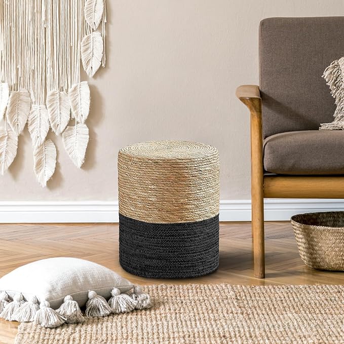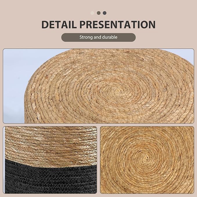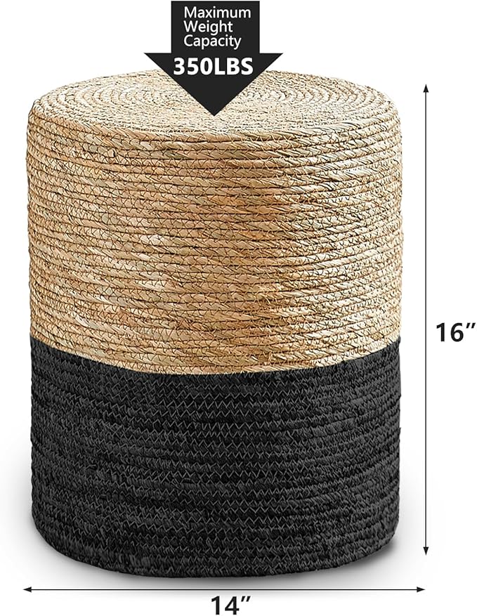 - 100% Handmade Cover: Pouf Ottoman is made of sustainable, and durable natural seaweed & corn husk braid.High-end sewing technology makes natural materials more tight and not easy to open