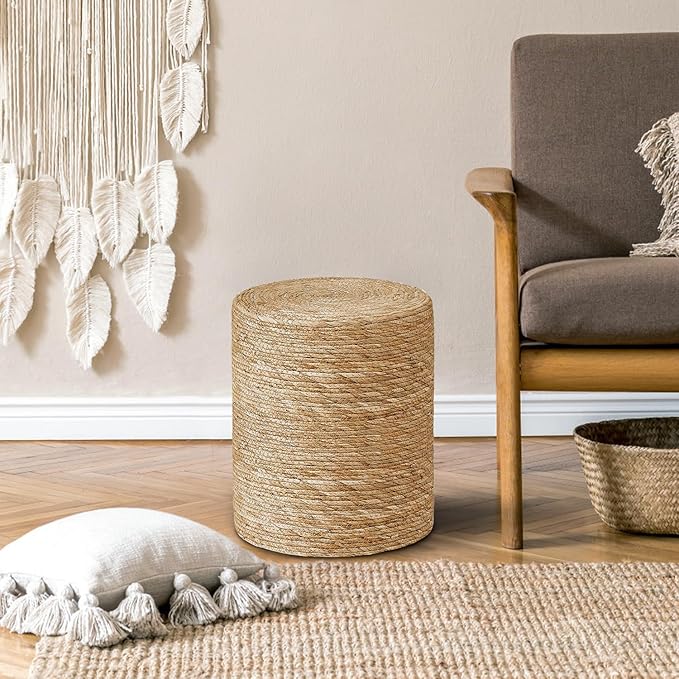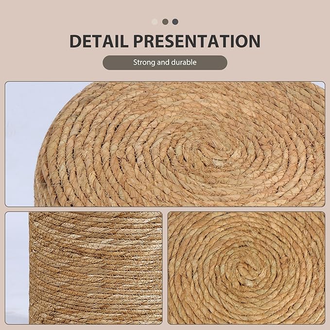 - 100% Handmade Cover: Pouf Ottoman is made of sustainable, and durable natural seaweed & corn husk braid.High-end sewing technology makes natural materials more tight and not easy to open