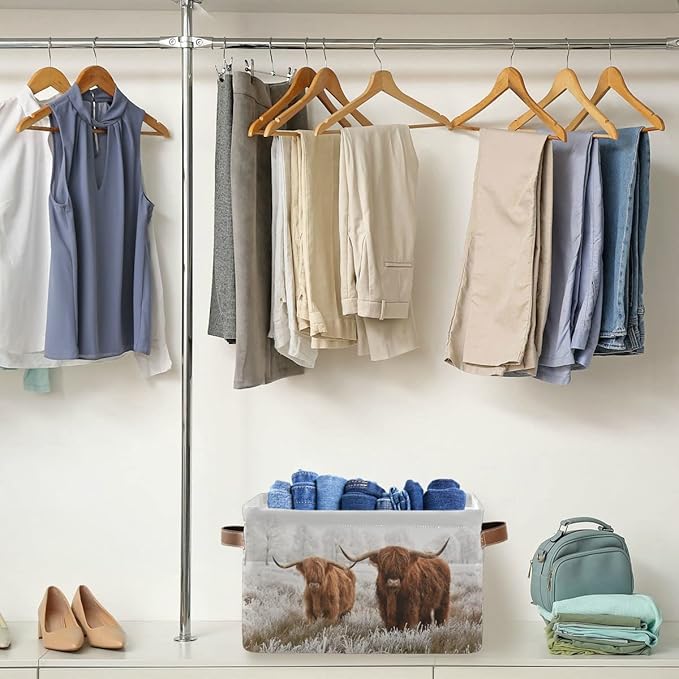 Scottish Highland Cow Storage Basket Fabric Storage Bin Baskets Bull Farmhouse Funny Animal Foldable Storage Boxes Bag for Baby Cloth Dog Toy Book Storage Cubes Shelf Closet Basket 16×12×8 Inches