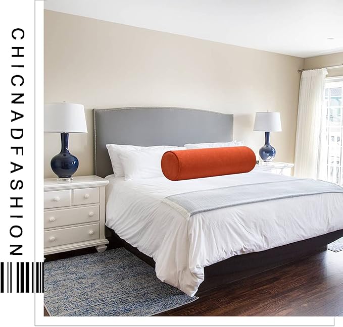 Cylinder Round Memory Foam Support Pillows 24X6 Cervical Neck Roll Pillow with Pillowcase Soft, Comfortable and Breathable for Sleeping, Chair, Car, Sofa,Travel OrangeRed