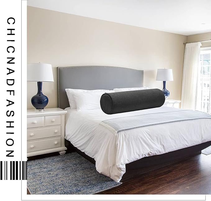 Cylinder Round Memory Foam Support Pillows 17.8X6 Cervical Neck Roll Pillow with Pillowcase Soft, Comfortable and Breathable for Sleeping, Chair, Car, Sofa,Travel Black