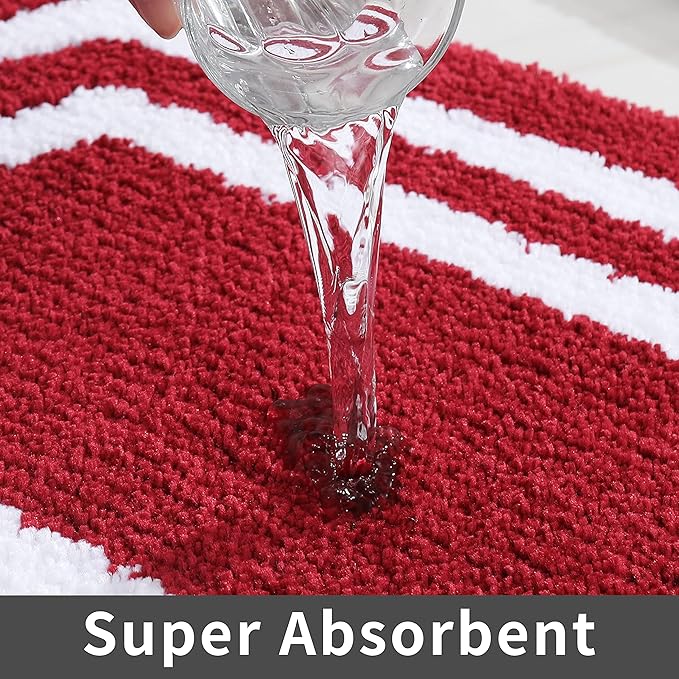 COSY HOMEER Extra Thick Bath Linen Sets Rugs - Anti-Slip Bath Mats Soft Plush 100% Strong Polyester Living Room Bathroom Water Absorbent(Red,20x32 - Inches)