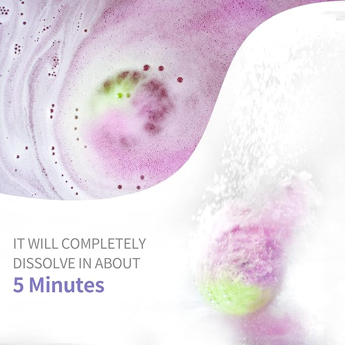 - Multisensory Spa Experience: Watch fizzy magic unfold as rainbow bubbles release velvety foam infused with 9 calming aromas - from lavender serenity to citrus vitality. Let Himalayan pink salt ease muscle tension while ylang-ylang essential oil melts stress away