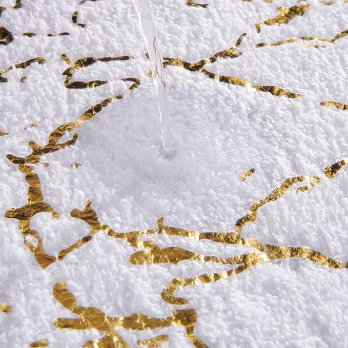 - Golden stripes & Decorative Performance: The gold decor rug is with bright and shiny golden streaks, go perfect with marble tile, and match well with the shower curtain, making the bathroom looks very luxurious. The golden foil is firmly fixed on the surface of the plush with imported glue, can't tear it off even if with your hand vigorously, don't worry about it falling.
