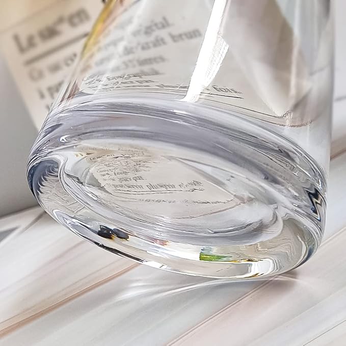 - STRONG AND STURDY: Made of high quality handmade glass material with thickened bottom to prevent shaking and tipping, this glass vase is strong, durable and easy to clean. When the sun shines through, the vase color is subtle.