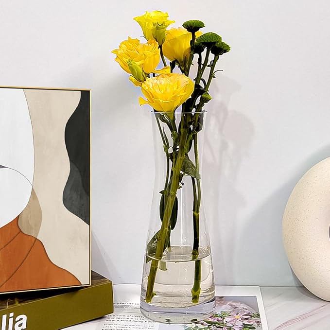 Aoderun Flower Vase for Decor 10" Clear Glass Vase for Centerpieces Large Vases for Flowers Dried Flower Home Decor Living Room Kitchen Office Wedding(Clear)