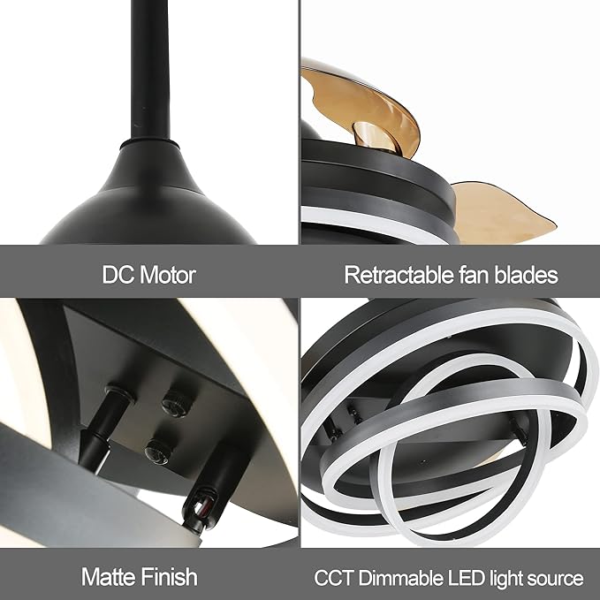 - 💡【Space-saving & Low-maintenance】Our fan's blades automatically retract internally, saving space and reducing the need for frequent cleaning. The integrated LED light provides ample energy-efficient illumination.