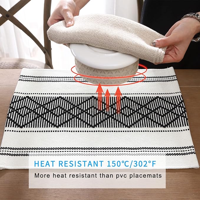 - 【Heat-resistant and non-slip】 This is a placemats heat resistant for dining table that can be used to protect wooden tables.large placemats cloth can at 150°C and below 312°Fahrenheit,Our cloth placemats for dining table can be used normally.The dining table mats placemats can effectively protect the table top of any material, high temperature,stains and daily The wear and tear will not damage the dining table.