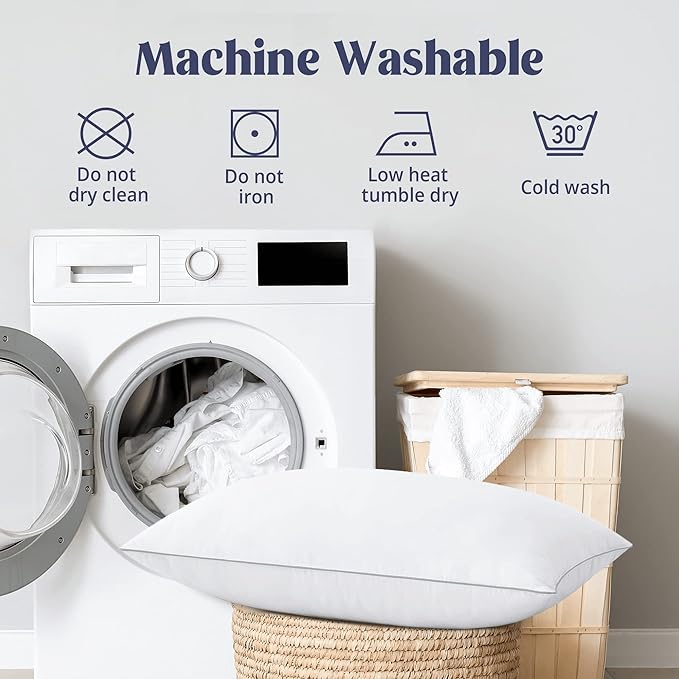 - USE TIP & EASY CARE - Fluffing your pillows daily by tapping or squeezing can help them return to their normal shape and force the inside air making the pillows fluffy again. The feather pillow is machine washable.Machine wash cold separately gentle cycle, tumble dry low.