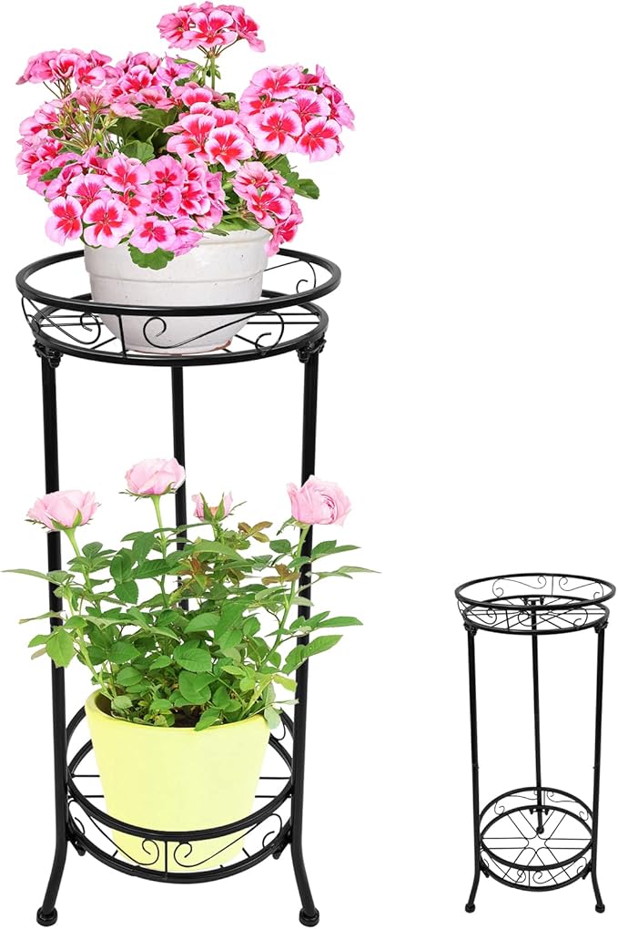 - 【Upgraded 2 Tiered Design】The outdoor plant stands is 26.7 inches in height , which can take your plants to new heights and enjoying the sun freely. And the 2 trays in diameter 11 inches can provide enough space to display various plants, tiered storage, giving plant flowers plenty of light.