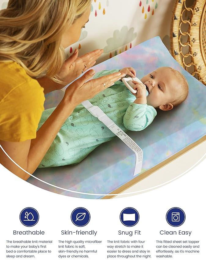 TotAha Premium Stretchy Changing Pad Covers (2-Pack)-Hypoallergenic, Silky Comfort, Buttery Soft, Calming Effect, All-Season Jersey-Knit 32 X 16 X 5''(Rainbow & Tie dye)