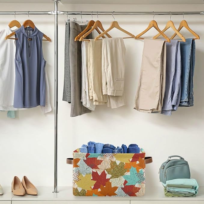 Fall Maple Leaves Storage Basket Fabric Storage Bin Laundry Baskets Autumn Pumpkin Foldable Storage Boxes Organizer Bag for Baby Cloth Dog Toy Book Storage Cubes Shelf Closet Basket 16×12×8 Inches