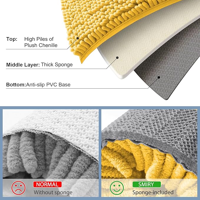 - [Soft & Comfortable] Step onto the plush softness of Smiry luxury bath rugs, treating your feet to unparalleled comfort & soft support every time you exit the shower or bathtub.