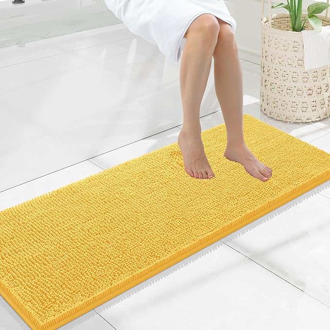 Smiry Luxury Chenille Bathroom Rugs 47x17, Extra Soft and Absorbent Shaggy Bath Mat, Machine Washable, Non-Slip Plush Carpet Runner for Tub, Shower, and Floor, Home Decor Accessories, Yellow