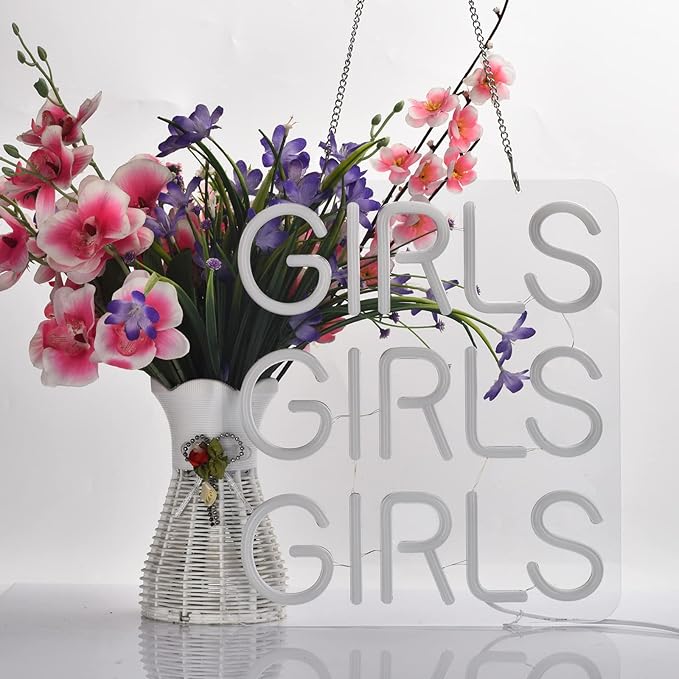 - Girls neon sign SIZE is 12”x 11'' ( 300mm x 280mm). USB Cable length: 1.8m ( 5.9 ft).The color is as shown in photos, It is with dimmer switch on the cord.