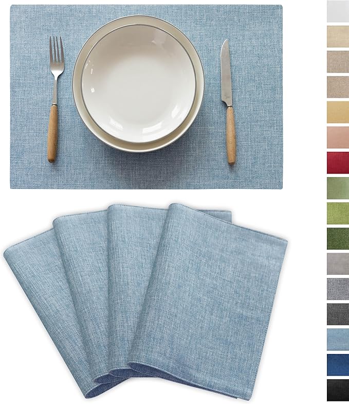 Demetex Blue Placemats Set of 4 Heat Resistant Place Mats Linen Cloth Placemat Dining Table Mats for Kitchen Plate Tables, Blue