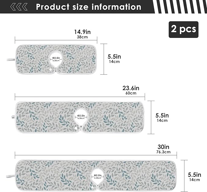 - DIMENSIONS: Three Size of Wamika faucet water catcher mat, 15" x 5" x 0.3", 23" x 5" x 0.3" , 30" x 5" x 0.3", Ø 2.5" Diameter single faucet hole.