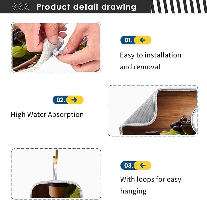 - DECORATION FOR KITCHEN BATHROOM: Using these Faucet Splash Catchers with our unique design, timeless color and seamlessly blends into your home to create perfect Sink Accessories, add a touch of luxury in your kitchen&bathroom will give your house an amazing makeover and elevate your home decor.