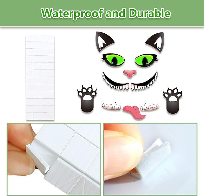 - Trunk or Treat Car Decorations Kit: Wonderful black cat face Halloween Trunk or Treat decor, including 2 huge green eyes, 2 black cat paws, 4 fangs, 2 ear, 1 tongue and 1 nose. Come with double-sided foam adhesives.