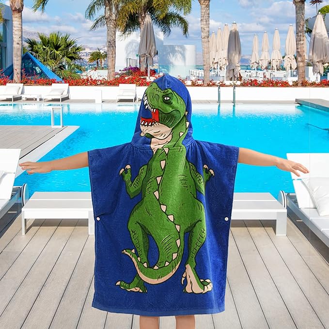 VOOVA & MOVAS Kids Poncho Towels with Hood (2-6Years), Soft Cotton Poncho for Boys Girls, Perfect for Child Swim | Camping Surf | Shower | Birthday Gifts, Dino/Dinosaur Theme