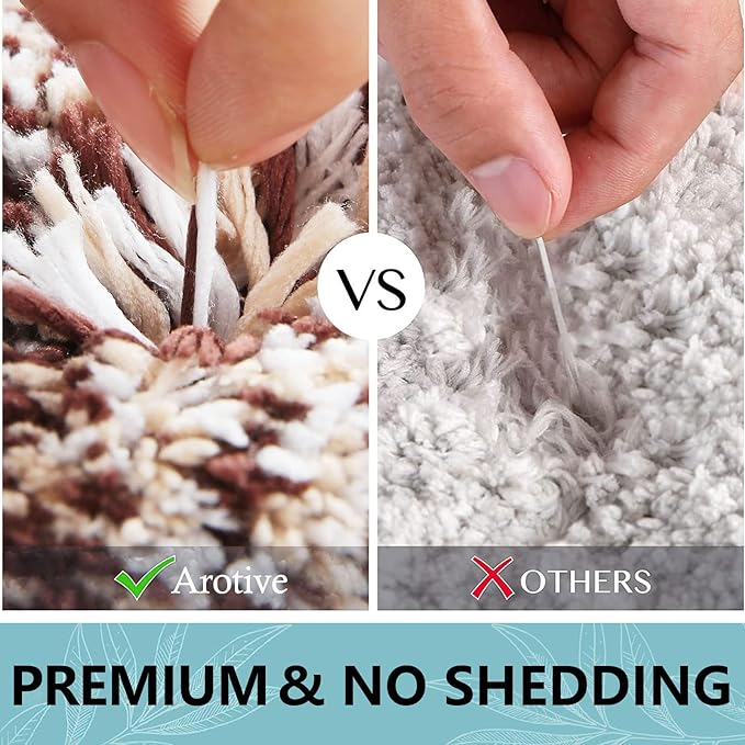 - Soft and Thick: Arotive bathroom rug is made of 1.18 inches polyester microfiber shags, sink your toes into the comfortable contentment of a bathroom floor mat from the threshold. Soft pile that soothes tired feet and shields toes from the cold floor. The surface hair has been reinforced to avoid shedding. Shake the product to make the bath mat plush