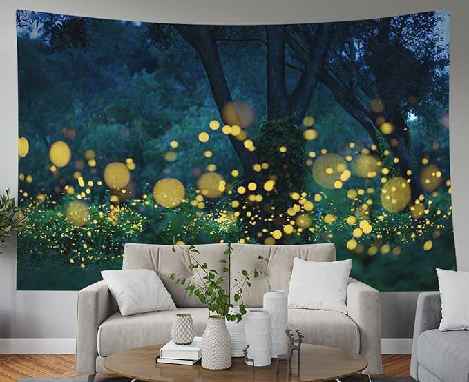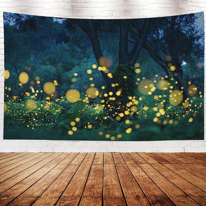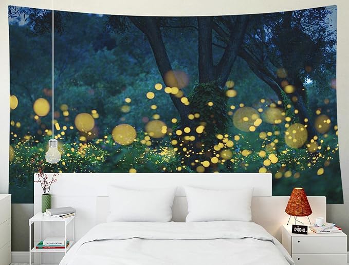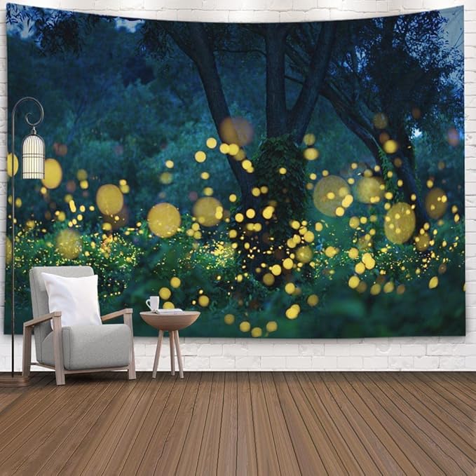 EMMTEEY Fantasy Night Trees Lightning Bugs Fireflies Wall Tapestry 80X60 Present for Friends Families