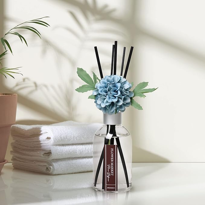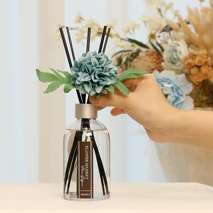 - [Product Contains] Aronica Fiber Reed Diffuser Contains: (1) 5 Fiber Diffuser Sticks, (1) Hand Made Artificial Flower Bouquet For DEcoration (1) Premium Diffuser Fragrance Infused With Natural Extracts (6.76oz 200ml), good for 90-120 Days.