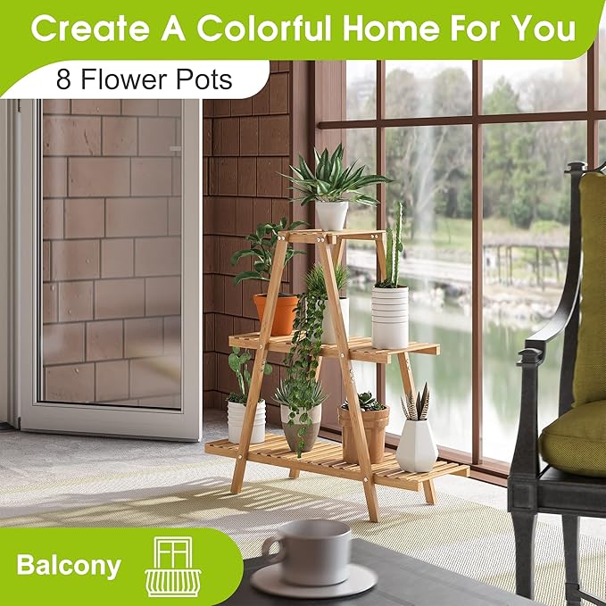 - Superb craftsmanship:polished smooth, and burr-free, easy to organize and clean. The flower stand has 3 layers of space, which is large and stable and can hold up to 8 pots of plants