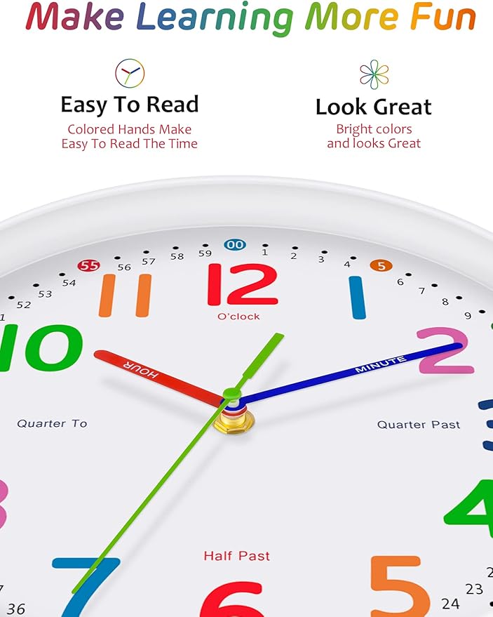 - ✅【Nice Gift For Kids,Parents And Teachers】This learning clock is a great gift for kids, parents, and teachers! anniversary gift, birthday, holiday gift. Share this cute wall clock with the ones you love.