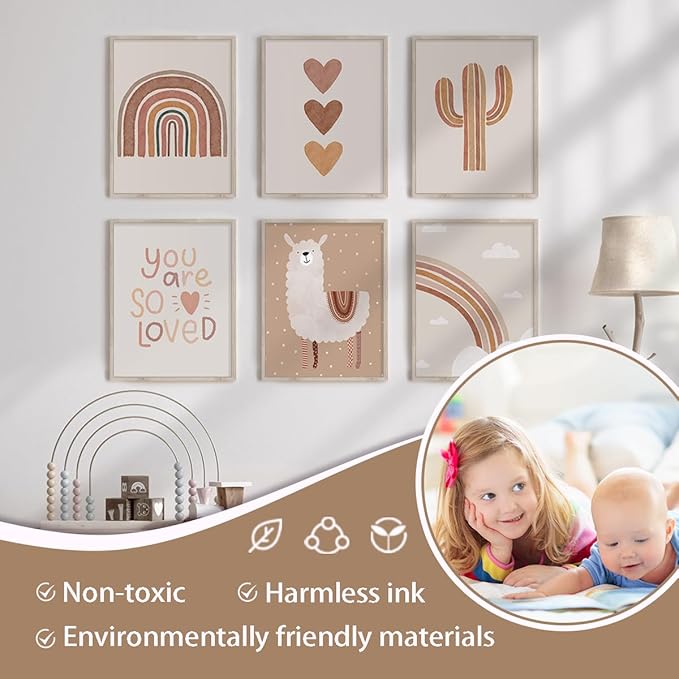- ✔ This series of posters are baby room wall decor products which developed with cute alpaca as the core. The main design elements are alpaca, sunshine, rainbow, cactus, alphabet and warm text. This set of posters adopts kids’ watercolor wall art prints. On the basis of cuteness, it combines with bohemian style to make this set of posters more artistic. As the nursery wall decor , these posters make the room look softer and warmer.