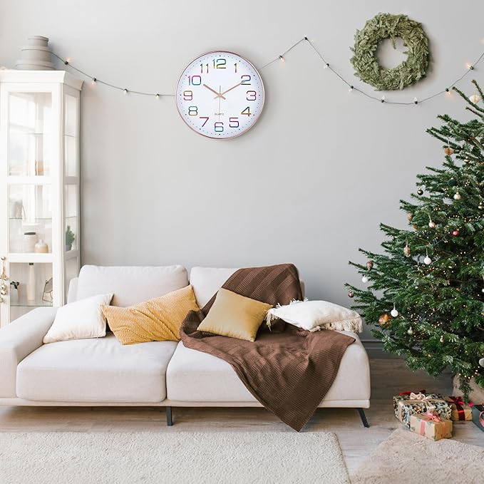 - Gift for Kids: 3D colorful arabic numbers, rose gold frame and clock hands, this funky and lovely style design will be loved by children. It's really an ideal gift for boys and girls on birthday or Christmas.