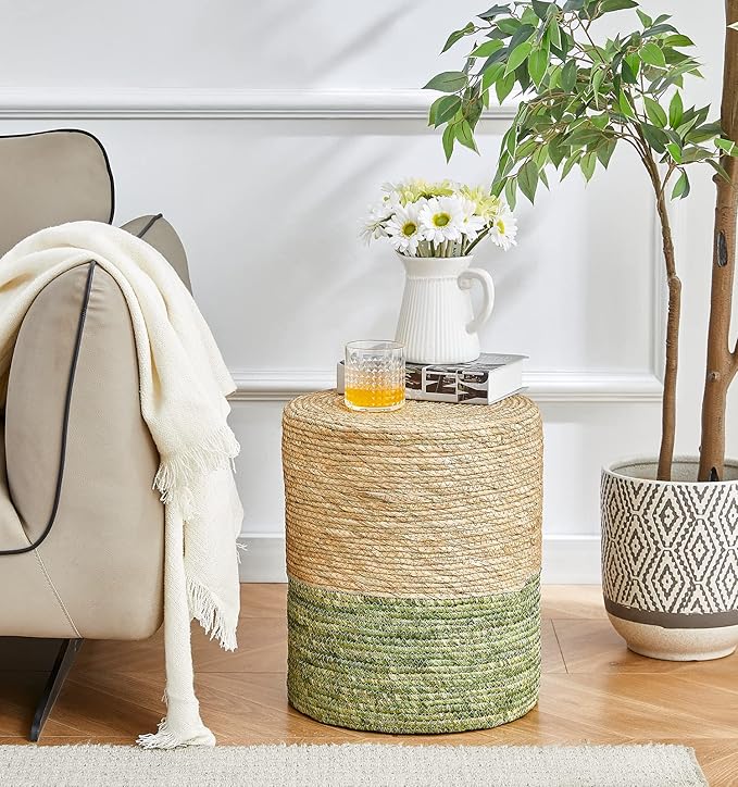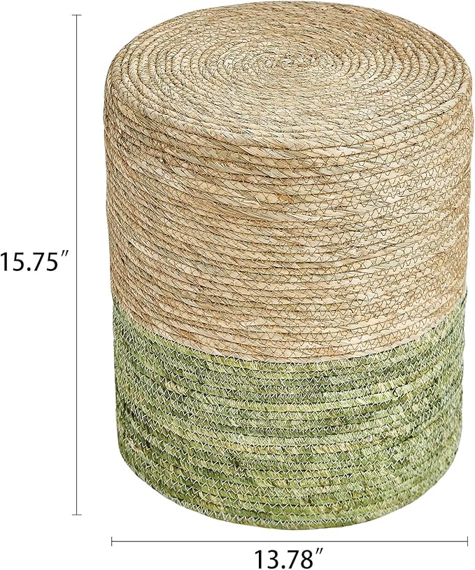 - 100% Handmade Cover: Pouf Ottoman is made of sustainable, and durable natural seaweed & corn husk braid.High-end sewing technology makes natural materials more tight and not easy to open