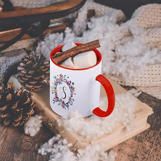 3dRose Coffee Mug, Size - 15oz - Pretty Watercolor Floral Circle Frame With A Monogram Initial S Monogram Initial - funny coffee cup gift