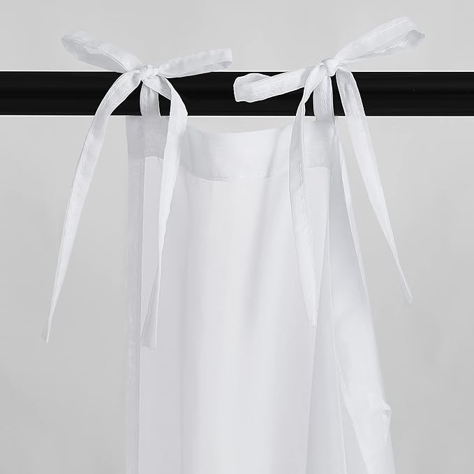 - Included Components:8 Sheer Panels/56 Tie tops (7 per panel)/8 Tie back(attached to curtains). Each panel measures W45 x L96 inches. Bed frame is not included.