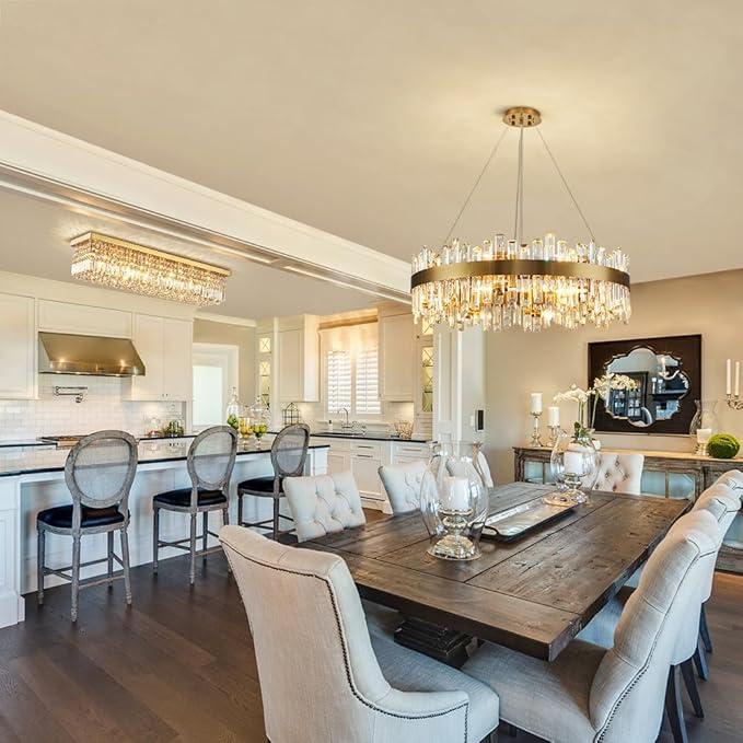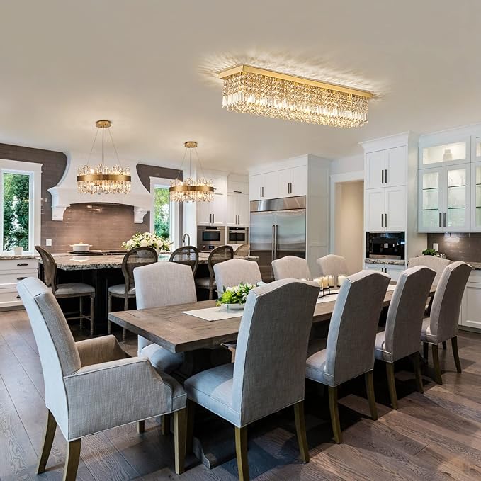 - ✨【Unique Gold Flush Mount Chandelier】: Modern gold flush mount ceiling light with luxury raindrop design. It adds a touch of luxury and elegance to any dining rooms and elevates the overall aesthetic of any spaces. Suitable for dining room, living room, kitchen island, bedroom, bathroom, bar, hallway, entryway, office, etc.