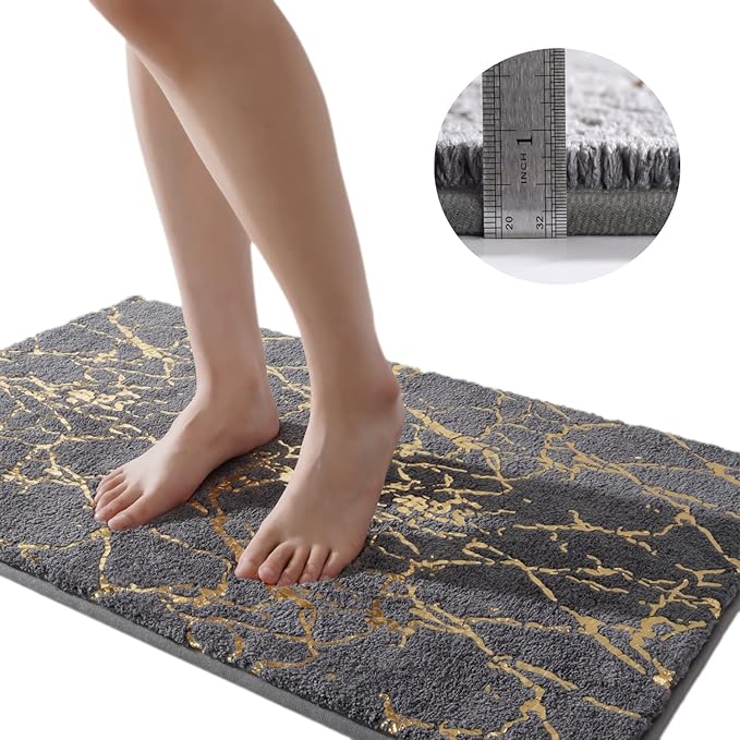 QJHOMO Marble Bathroom Rug Gray and Gold Decor Bathroom Rugs Non Slip Bath Mat Super Absorbent Microfiber Plush Bathmat Machine Washable Floor Carpet for Tub, Shower, Bedroom (24x36 inch)