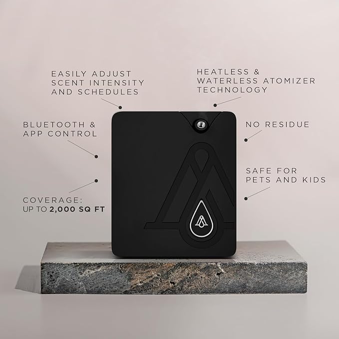 - EASY TO SET UP WITH CUSTOMIZABLE SETTINGS – This new scent diffuser is compatible with Bluetooth technology (Bluetooth is a registered trademark of Bluetooth SIG) and is controlled through the AromaPlan App, available for iOS and Android. It is possible to create multiple advanced schedules (days of operation, specific times, fog intensity, work time, and break time).