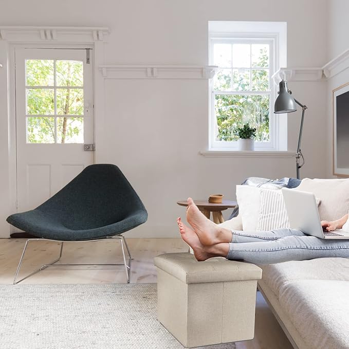 ALASDO Storage Ottoman Footrest Stool Small Ottoman with Storage Foldable Ottoman Foot Rest Footstool Bench for Living Room 17x13x13inches Beige
