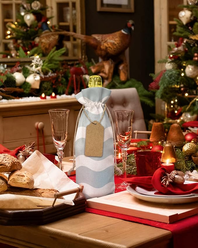 10 Pack Wine Bottle Bags, Blue Ripple Wine Bottle Cover with Drawstring, Simple Blue White Waves Aesthetics Gift Bag for Champagne Wedding Birthday Party